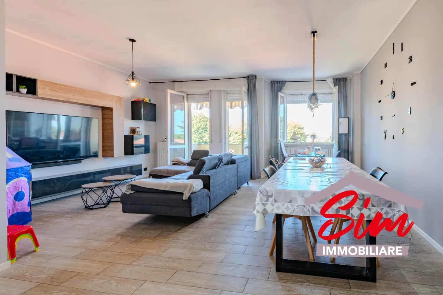 Entra e lasciati accogliere da un soggiorno ampio e inondato di luce, il luogo perfetto per rilassarsi dopo una giornata intensa o per condividere momenti preziosi in famiglia.