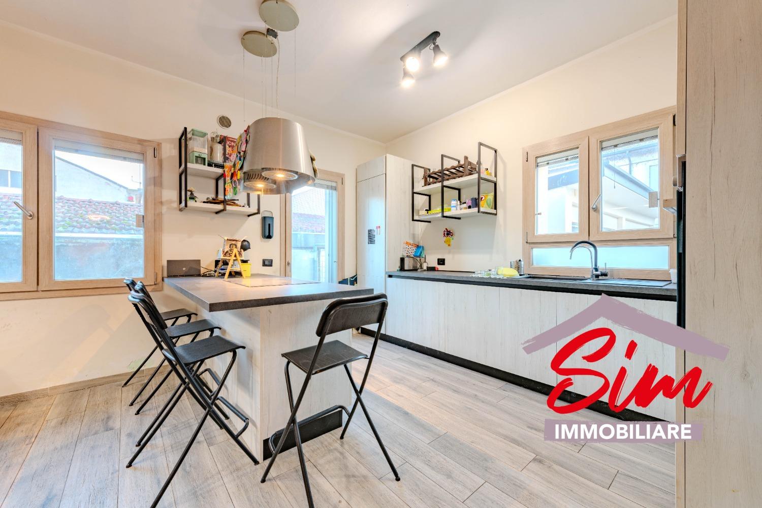 Appena varcata la soglia si viene accolti da un ampio open space luminoso e accogliente, dove soggiorno e cucina si fondono in un ambiente conviviale e raffinato. La cucina moderna con isola è il cuore della casa: perfetta per cene con amici, momenti in famiglia o semplicemente per godersi lo spazio aperto tenendo sempre tutto sotto controllo.